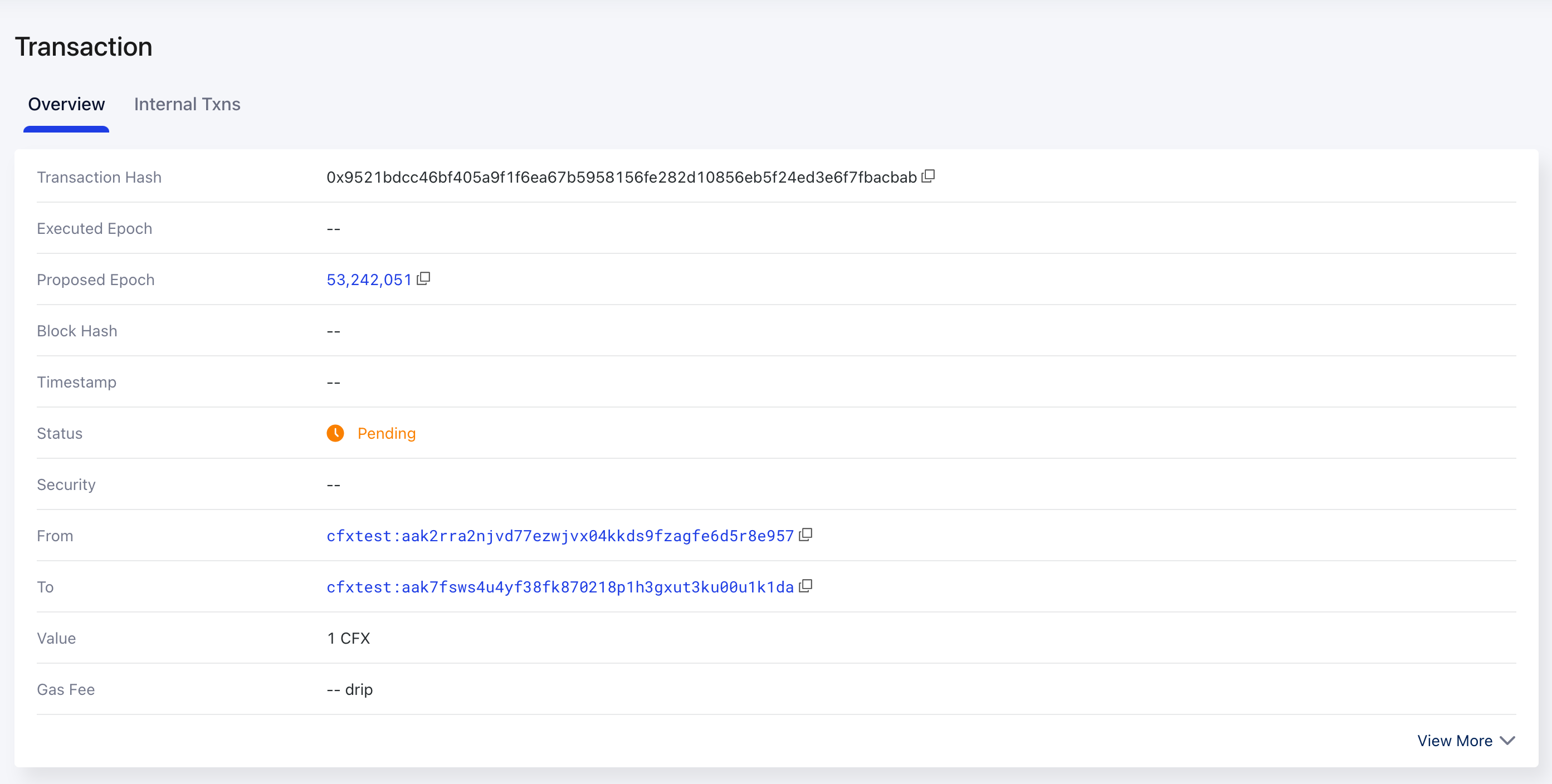 At this time, we can go to the account details page of the transaction sender, and view the pending transactions of the user through the View Pending Txns tab on the account page.