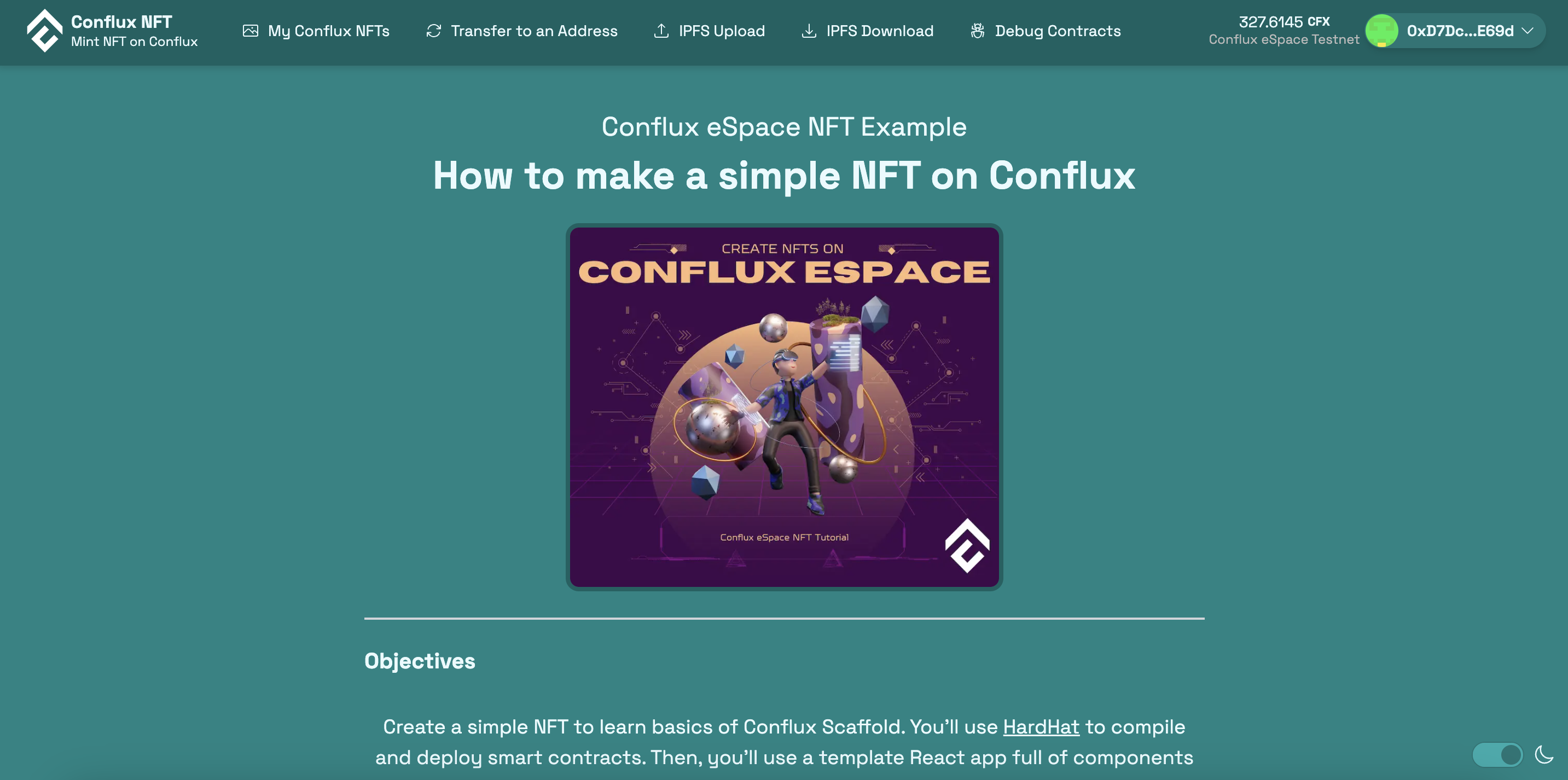 In this tutorial, we go more in-depth of how the solidity contract is used and interact with the ERC721 contract to mint NFTs on Conflux eSpace that can be transfered to other wallets.